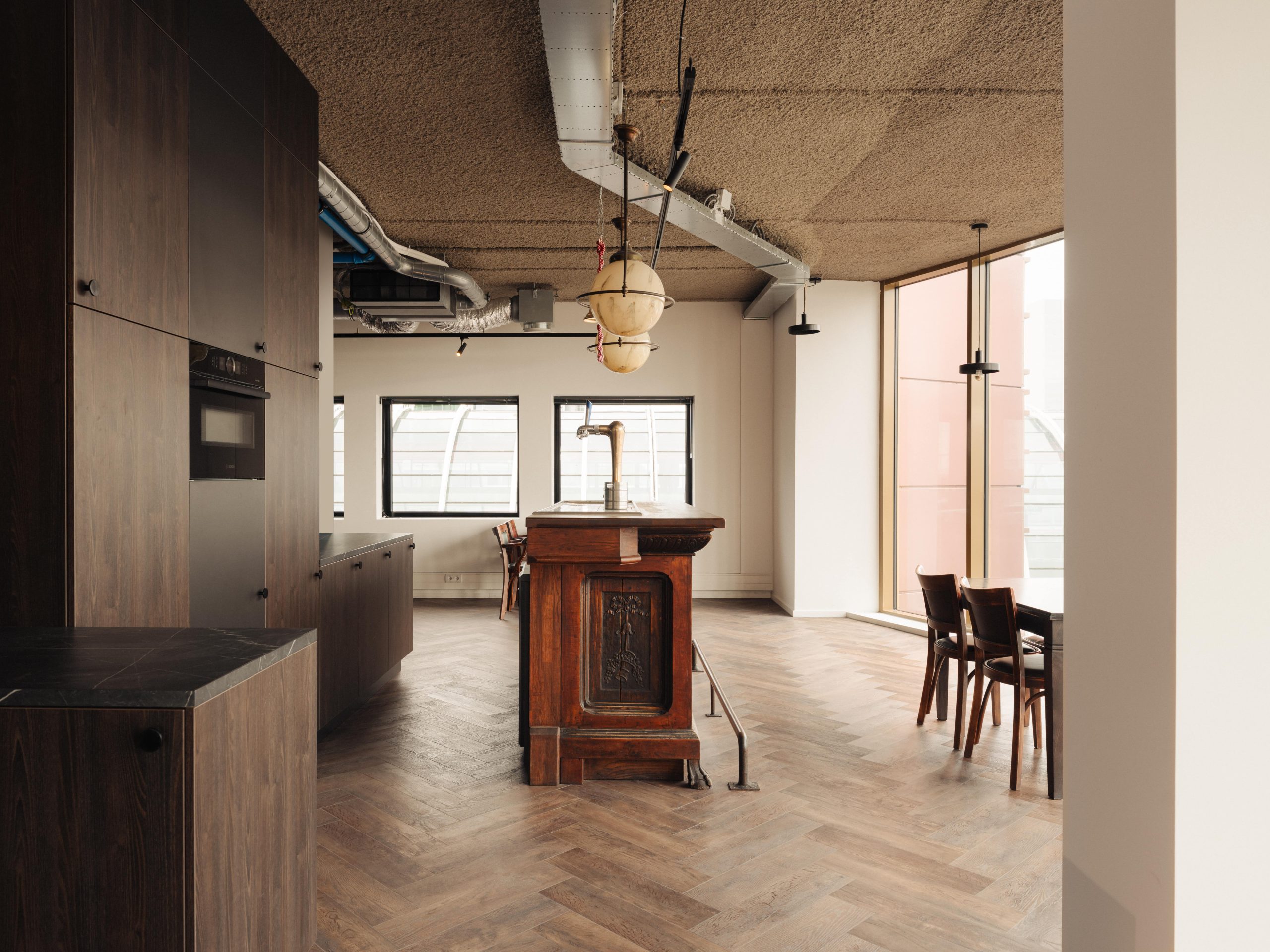Op de 2e verdieping is circa 695 m² v.v.o. hoogwaardige, turn-key kantoorruimte beschikbaar. De ruimte is flexibel indeelbaar en voorzien van een stijlvolle inrichting, inclusief bar, royale pantry en meerdere interne vergaderruimtes.
