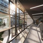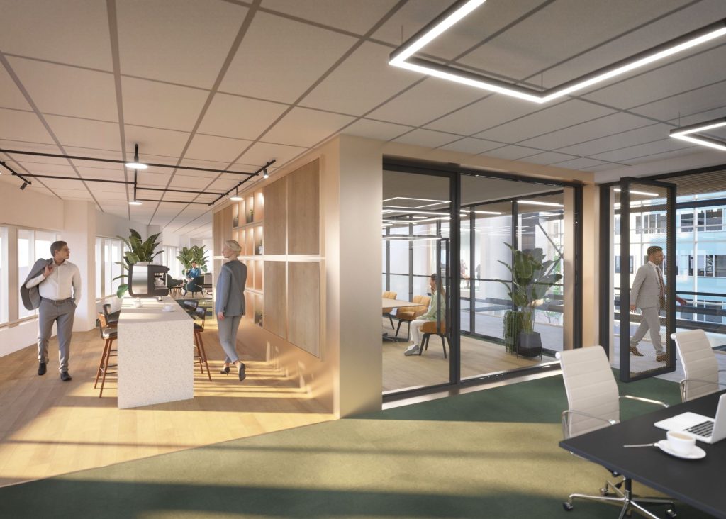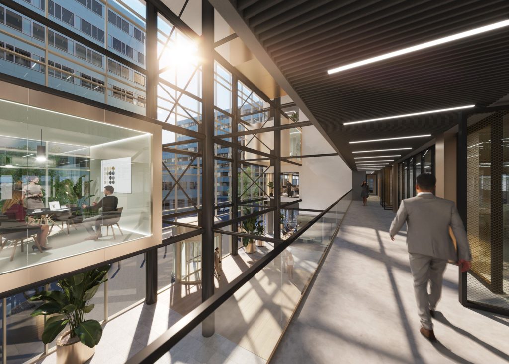A steel construction in which meeting cubes are installed at different levels is a real eye-catcher. This is traversed by a beautiful glass balustrade. Sustainable building materials have been used throughout Gaudi. Wood, natural stone, glass and steel constructions alternate and together form a harmonious whole. The colors are neutral and provide a serene and quiet atmosphere. At Gaudi Offices, we understand that healthy work environments enable businesses to thrive. All facets of our interior and in our wider offering contribute to an environment where you can relax and live a healthy life. A striking example is the open structure of the building which allows daylight to enter unobstructed. Throughout the day, state-of-the-art installations ensure fresh air supply. In an indoor gym, tenants can let off steam and subsequently catch their breath in the restaurant or in a relaxing lounge with healthy snacks. And all that on an area of nearly 9,000 sqm. It goes without saying, Gaudi Offices is the answer to healthy working.